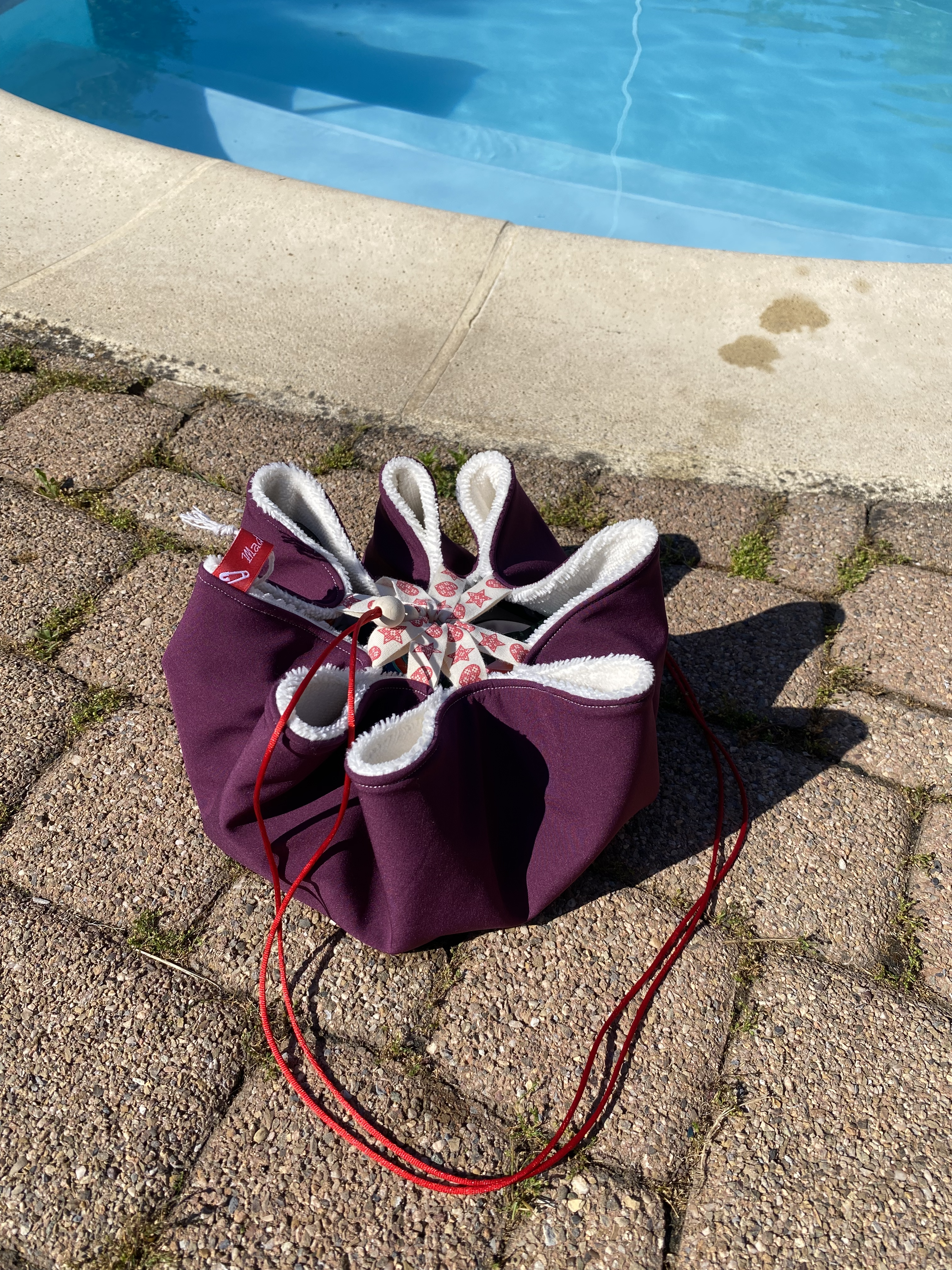 Evitez de vous salir les pieds dans les cabines à la piscine! Otez votre maillot mouillé debout sur le tapis, séchez vous et rhabillez vous, puis tirez sur le cordon pour enfermer votre maillot de bain, votre sac de piscine ne finira plus trempé!